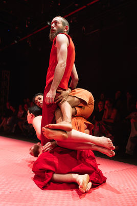 By Stav Marin and Neta Weiner, Cut. Loose is a physical and vocal duet exploring the violence and tenderness of a couple in the present moment and place. The work examines relationships and power dynamics across gender, militarism, popular culture, and politics. Within a bare square arena, battles unfold that alternate between shared practice, intimacy, and struggles for survival, placing the audience at point-blank range. Critics hailed it as “a hectic show that touched something deep about the horrible price of war and violence” (Shai Bar Yaakov, Yedioth Ahronoth); “an unstoppable brainwash about the Israeli actuality, with brilliant spoken-word acts and precise, erotic, and violent movement-work” (Yair Ashkenazi, Haaretz); and “a marvelous combination of speech and movement… serious in its every purpose, and funny as much as it is gripping” (Zvi Goren, Habama).