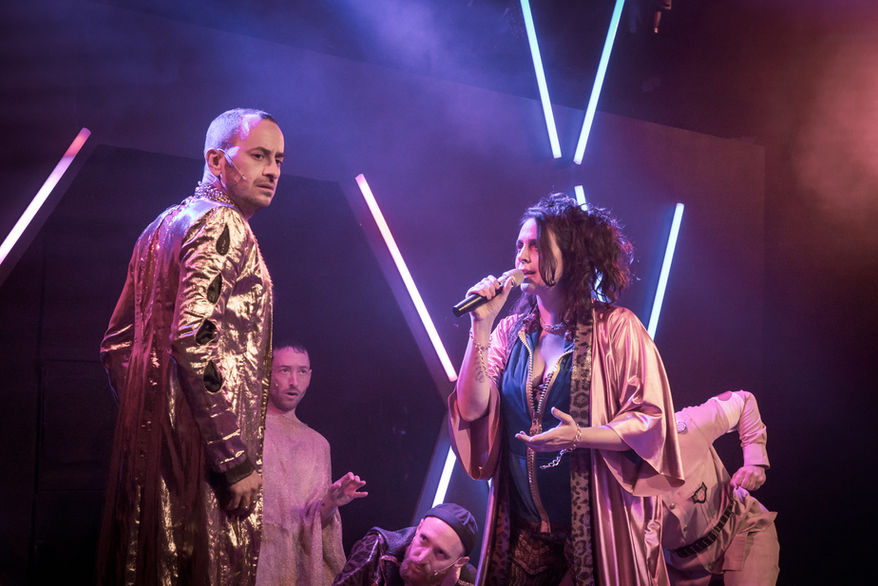 A guided journey through the urban, historical, and identity-laden labyrinth that is Tel Aviv–Jaffa, Al Hatel is a spoken-word cabaret vision directed by Raz Weiner. Blurring the boundaries of genre and language, Arabic, Hebrew, English, and Russian collide on the tongues of Neta Weiner and Yonatan Kunda — the writers and performers of the piece. Celebrated as “a visual, vocal, and sensual journey that transforms biting satire into a work of power… a moving and empowering critical event” (Prof. Yehouda Shenhav); “the best performance I saw this year” (Mati Shemoelof); and “political avant-garde theatre at its best… dazzlingly inventive, from Maimonides to Pinocchio… this is revolution” (Judd Ne’eman).